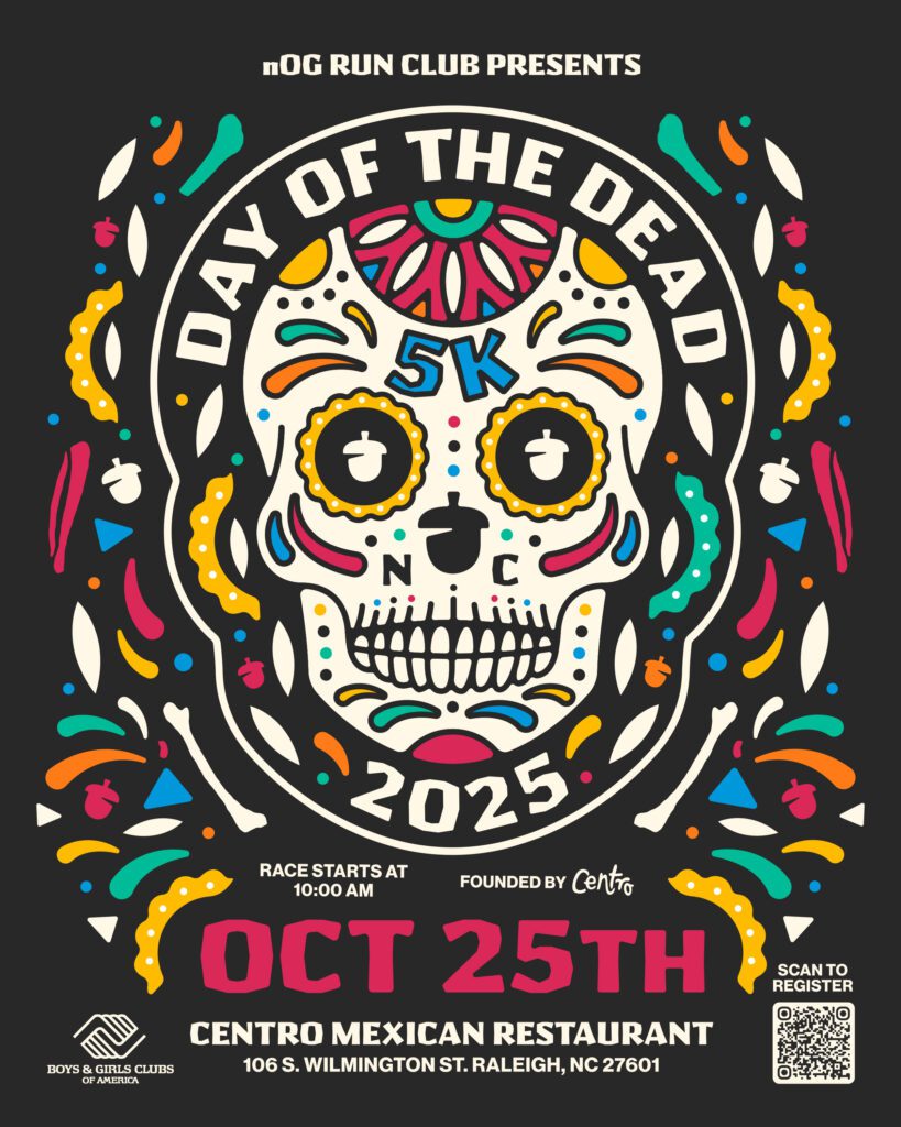 Join us on Saturday, October 25, 2025 for the 13th Annual Day of the Dead 5K & Street Festival—a vibrant celebration of culture and community in downtown Raleigh, all in support of the Fox Road Boys & Girls Club (formerly Brentwood Boys & Girls Club).
